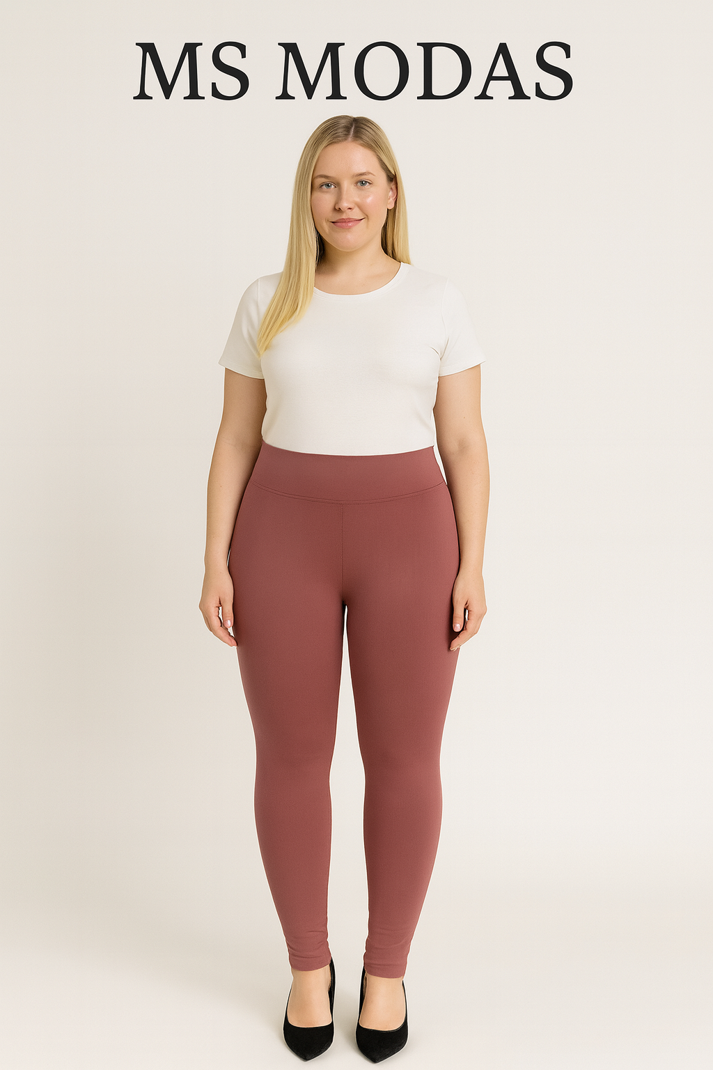 Leggins básicos de cintura alta confeccionados en tejido efecto **piel de melocotón**, suave al tacto y con una agradable elasticidad que se adapta a la silueta. Su acabado mate y textura afelpada aportan comodidad y un estilo versátil, perfectos para el día a día.