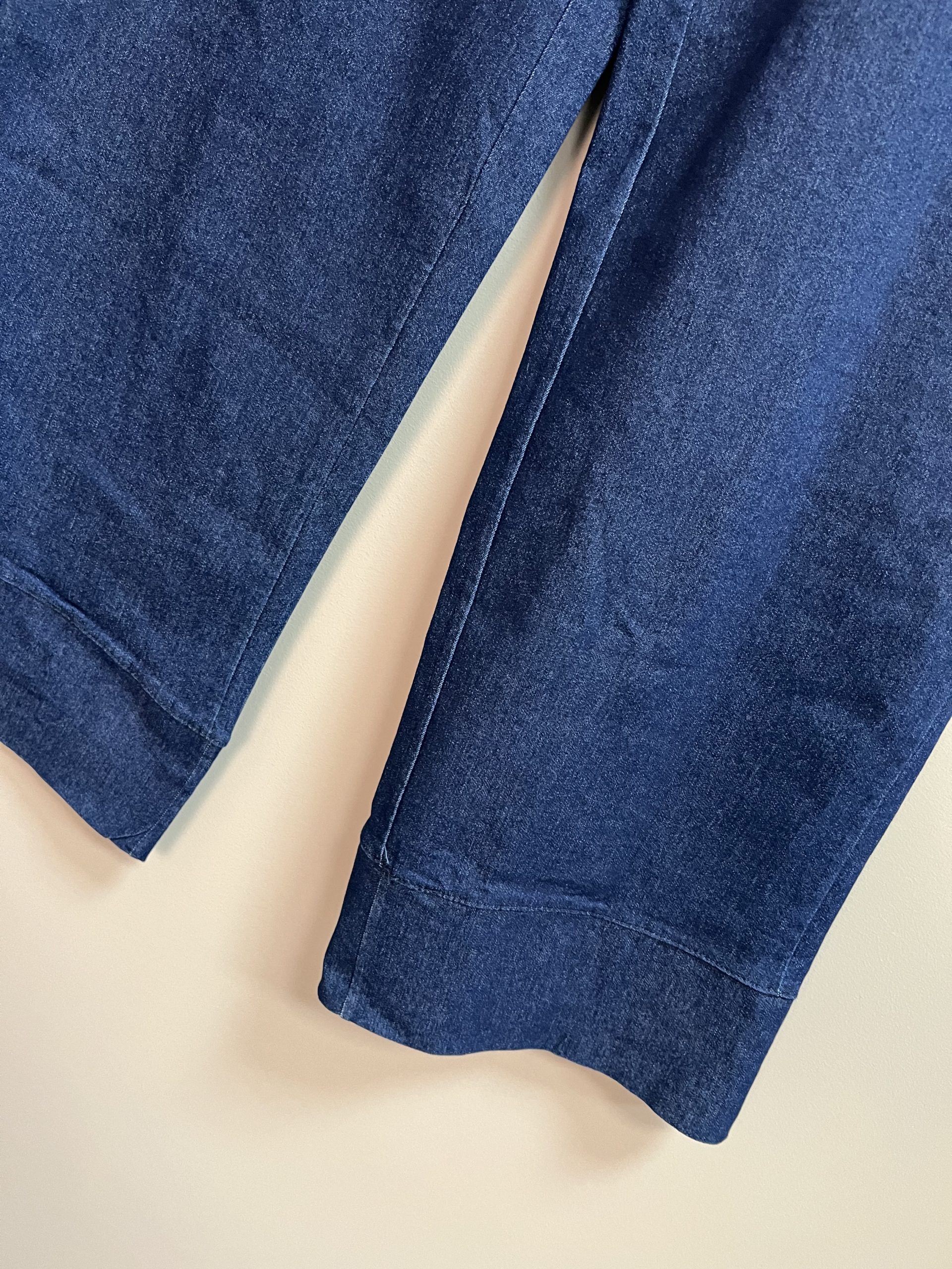 Diseño: Acabado en azul denim clásico con costuras reforzadas y un bajo ancho muy elegante.